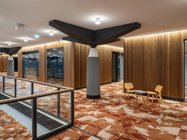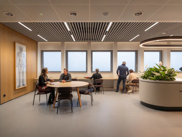 Hoe dat in de praktijk in het gebouw uitpakt? Van Herpen: ‘In de basis zijn overal in ons kantoorgedeelte de vier verschillende werkplektypen terug te vinden. In de laagbouw vind je – ten opzichte van de hoogbouw – wat minder open werkplekken en wat meer overlegruimtes. Dat komt ook doordat een deel van de laagbouw (het ‘Forum’) ingericht is als vergaderlocatie voor onszelf en onze gasten.’