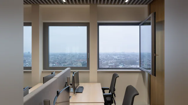 Ten eerste: de vergaderfaciliteiten. ‘We zijn er zowel kwalitatief als kwantitatief op vooruit gegaan. In onze tijdelijke huisvesting, het Toorop-gebouw aan de Spaklerweg in Amsterdam, waren te weinig ruimtes beschikbaar om te vergaderen. En ook zaken als akoestiek en de beschikbare AV-middelen waren niet optimaal. Dat hebben we nu echt goed op orde.’