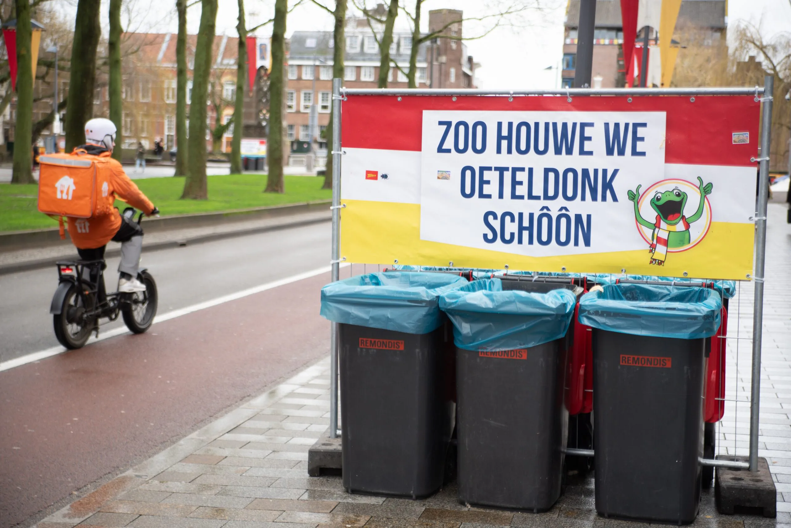 "Wij huren altijd twee grote containers voor ons eigen afval, zoals lege dozen en sausbakken. Daarnaast gebruiken we kleinere containers voor het afval van klanten. Die worden normaal gesproken met carnaval 's nachts opgehaald," zegt Nicole Vermolen.